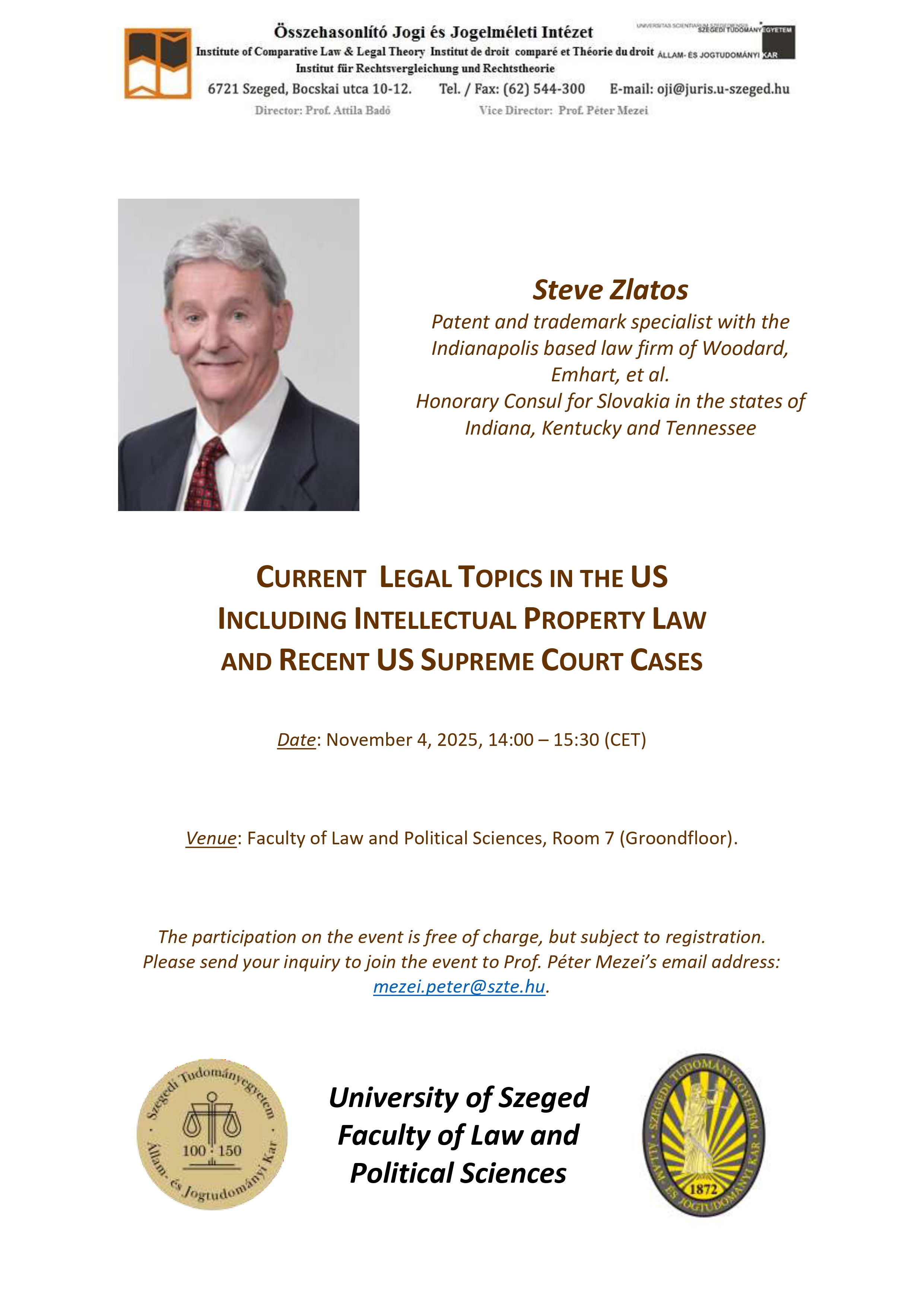The Institute of Comparative Law and Legal Theory cordially invites you to a lecture by Mr. Steve Zlatos on Tuesday, November 4, 2025.