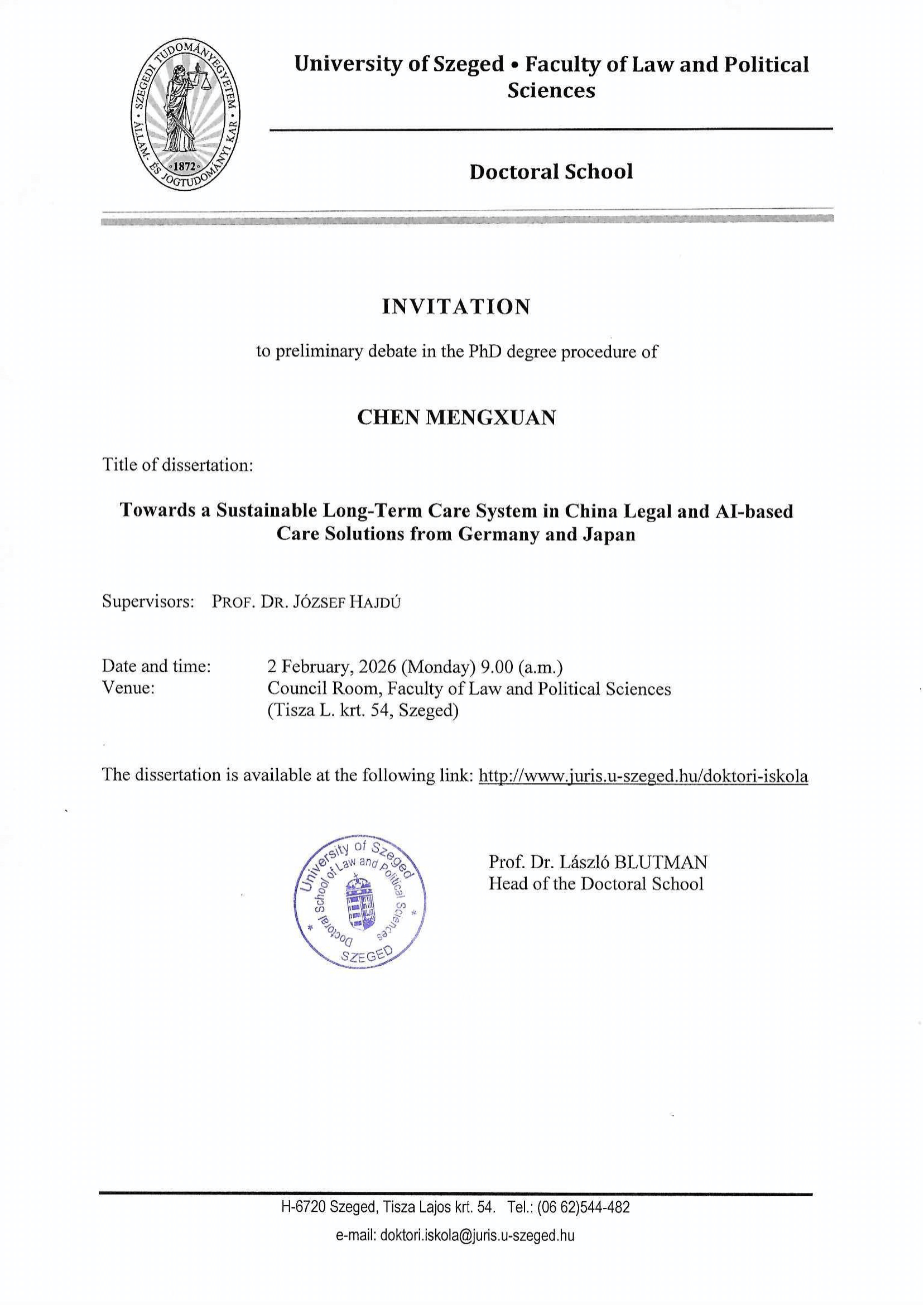 Date and Venue: 2 February 2026, 9:00, Council Room (first floor), Faculty of Law and Political Sciences (54 Tisza Lajos Boulevard, Szeged)