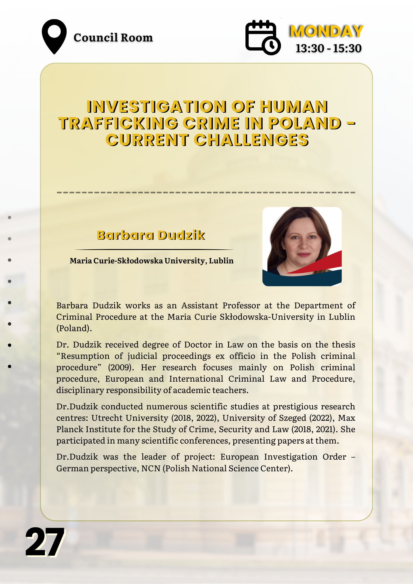 2025. október 6-10. között az SZTE Állam- és Jogtudományi Kar harmadik alkalommal rendezi meg a Nemzetközi Hetet, amely során a világ minden tájáról érkező vendégoktatókat látunk vendégül, személyesen és online formában egyaránt. A résztvevők számos változatos kurzuson és előadáson vehetnek részt, amelyeket elismert oktatók tartanak, új nemzetközi nézőpontokat kínálva a jog és a kapcsolódó tudományterületek iránt érdeklődőknek. Örömmel osztjuk meg az előzetes előadói névsort, illetve az előadások és kurzusok címét; a teljes programot hamarosan közzétesszük!