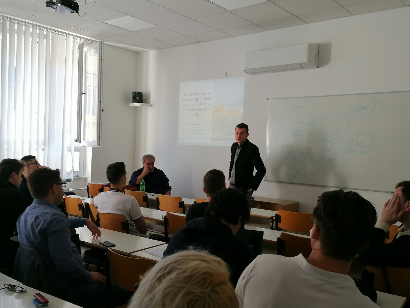 A legaktívabb TDK-műhely pedig a Politológiai Tanszékhez kapcsolódó volt, amely elsősorban a politikatudományok szak alap- és mesterképzéses hallgatói számára kínáltak tudományos aktivitásokat. A tanév megkezdéseképpen orientációs nappal egybekötött alakulóülést tartott a Politikatudományi és Államelméleti Tudományos Diákkör 2024. október 22-én, amelynek keretében Dr. Löffler Tibor, a Politológiai Tanszék egyetemi docense ismertette a diákkör működését, majd Márton Richárd, a TDK-műhely OTDK-különdíjjal kitüntetett hallgatója mutatta be a diákköri kutatás szépségeit. A kötetlenebb programok jegyében 2025. április 8-ára a tudományos diákkörbe való toborzás céljából szerveztek a politológus és a nemzetközi tanulmányok szakos hallgatók számára vetélkedőt a Városi Rock Klubban. A rendezvény célja az volt, hogy a résztvevő hallgatók kötetlenebb formában szakmai és karismereti tartalmú feladatok révén mérhessék össze tudásukat, miközben lehetőségük nyílt egymás, illetve oktatóik jobb megismerésére is. Jelen pályázatból finanszírozhattuk a 2025. április 24-e és 26-a között Miskolcon megrendezett Országos Tudományos Diákköri Konferencia Társadalomtudományi Szekciójára való utazását az SZTE-ÁJTK által nevezett, összesen tizenkét hallgatónak, valamint kísérőiknek. Emellett négy kötetlen beszélgetéssel záródó szakmai előadást is tartottak az érdeklődők számára. Először 2025. március 5-én Molnár Csaba kvantitatív és Győri Lóránt geopolitikai elemzők a dezinformációs jelenségek aktuális kérdéseit járták körül, majd március 20-án Vörös Zoltán a Száhel-övezetről. Március 25-én pedig médiatudatossági témában tartott előadást Martin József Péter civil szervezeti vezető és Panyi Szabolcs újságíró, akik több oldalról világították meg a jelenlegi magyar médiahelyzet kihívásait és sajátosságait. A szemeszter végén, május 13-án dr. Sergio Pérez-Castanost, a spanyolországi Burgos Egyetem kutatóját láthatták vendégül, aki a baszkföldi terrorizmus történeti hátterét és politikai kontextusát mutatta be angol nyelven. A legtehetségesebb hallgatóknak a tanszék által hirdetett, a Választások és korszakváltások Magyarországon – 1920, 1945, 1990, 2010 című poszterversenyen való részvételre is lehetőségük volt. A pályaművek készítői többek között olyan kérdésekre kereshettek választ, mint a választójog és a választási rendszerek változásai 1920 és 2010 között, az 1945. évi választás legitimitásának sajátosságai a szovjet befolyás árnyékában, az 1990. évi szabad választások szerepe a modern magyar demokrácia intézményrendszerének kialakulásában, vagy a 2010. évi választás rendszerszintű következményei a közjogi berendezkedésre és a politikai versenyre nézve.