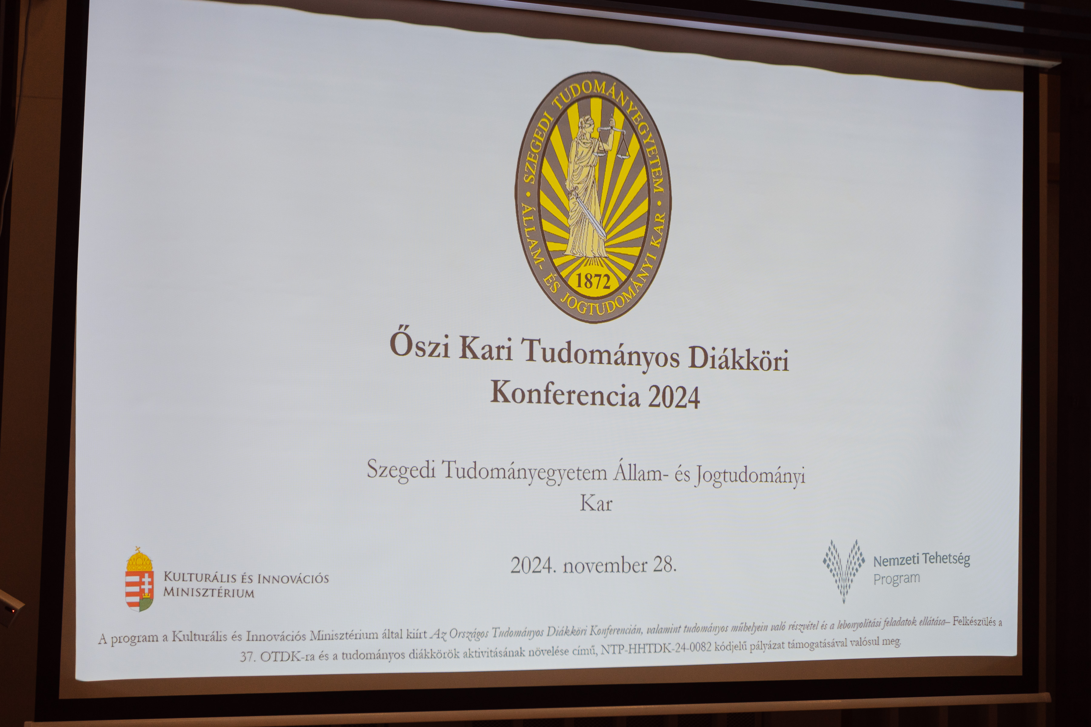 Az őszi szemeszter legfontosabb diákköri eseményeként a Szegedi Tudományegyetem Állam- és Jogtudományi Kara 2024. november 28-án rendezte meg az Őszi Kari Tudományos Diákköri Konferenciáját a 37. OTDK-ra való kvalifikáció céljából. A megmérettetésen mind a jogász, mind a politológia és nemzetközi tanulmányok szakos hallgatók a 2025 tavaszán megrendezésre kerülő országos versenyre nevezhettek be pályamunkáik bemutatásával. A diákköri konferenciánkon 42 pályamunkát mutattak be a versenyzők mintegy hat tagozatban, amelyek közül négy az állam- és jogtudományok témakörét érintette, míg a nagyszámú nevező okán a politikatudományok és a nemzetközi tanulmányok szakos hallgatók is önálló tagozatban versenyezhettek. Az Őszi Kari Tudományos Diákköri Konferencia sikerét és a témavezetők kiemelkedő felkészítő munkáját dicséri, hogy az SZTE-ÁJTK több mint tíz évet követően ismét sikeresen töltötte be az Állam- és Jogtudományi Szekció vonatkozásában rendelkezésére álló 40 fős keretet.